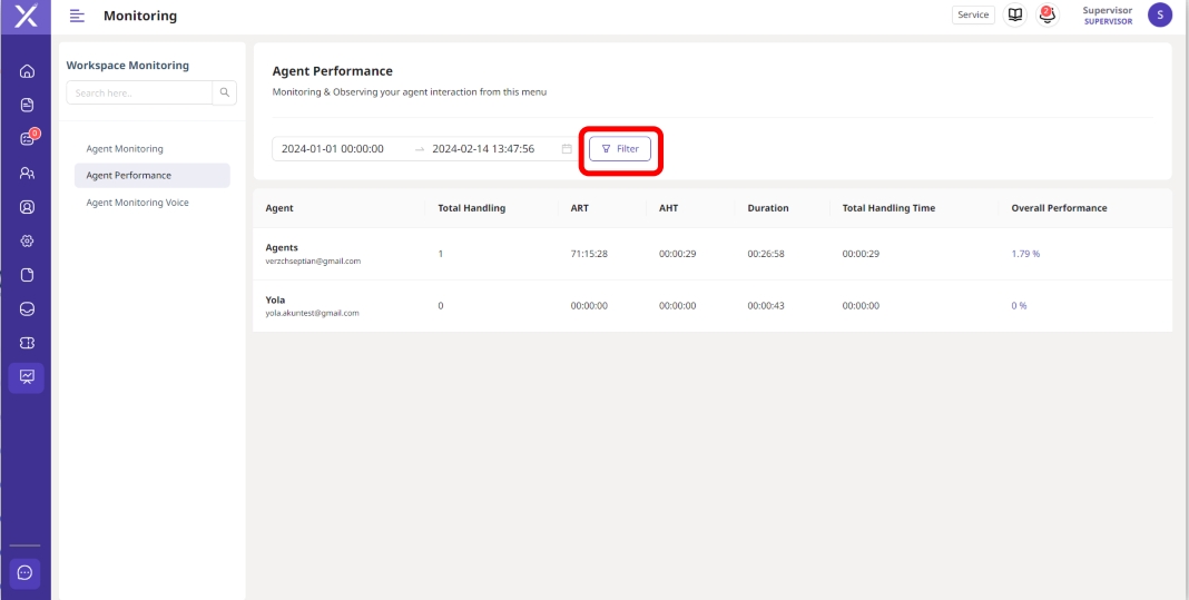 Di halaman ini Supervisor dapat memonitoring performa Agent.