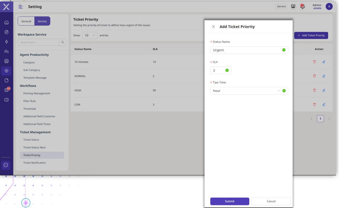 Klik "Add Ticket Priority" untuk menambah tiket priority, kemudian isi form yang berada di tampilan.