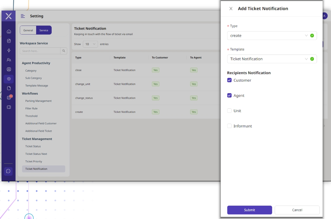 Klik "Add Ticket Notification" untuk menambah tiket notifikasi, kemudian isikan form yang muncul di tampilan.