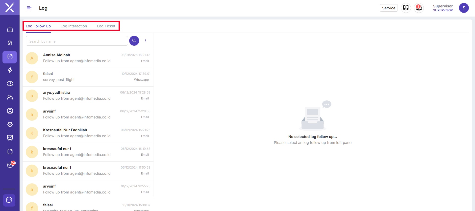 Di menu ini, Supervisor tidak dapat membalas interaksi dengan customer, hanya dapat melihat interaksi yang terjadi antara Agent dengan customer .