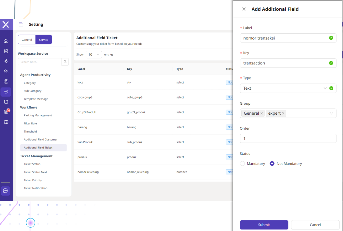 Pada form Add Additional Field Ticket, terdapat beberapa hal yang perlu diisi :