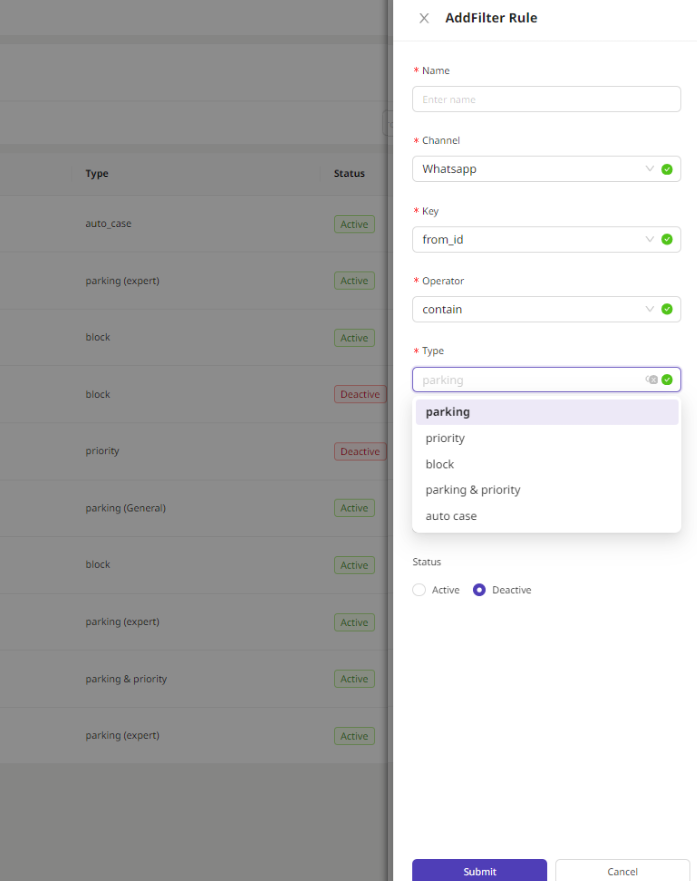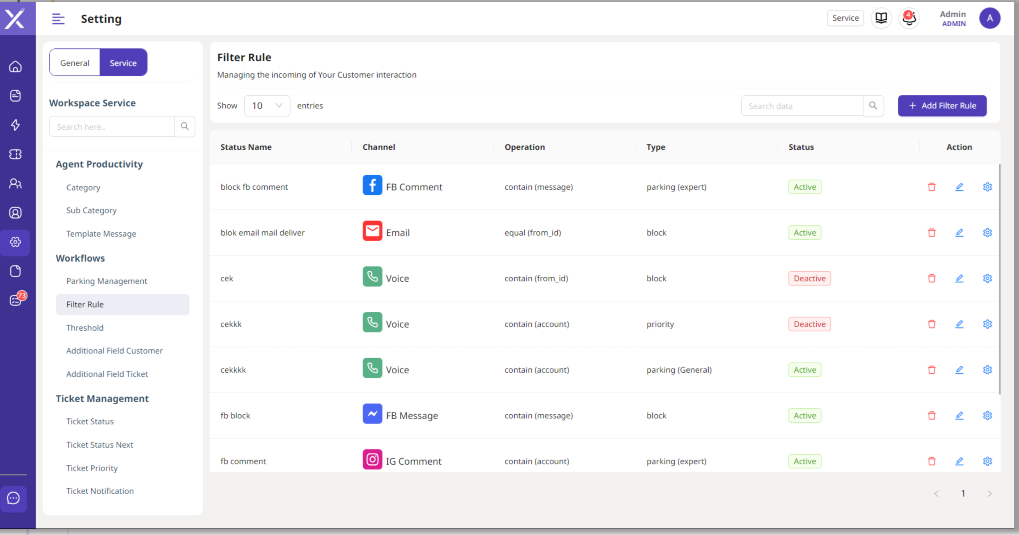 Untuk membuat filter rule klik "Add Filter Rule" yang berada di pojok kanan atas.