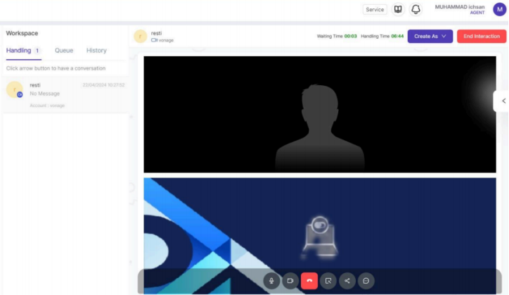 Pilih tab “handling” untuk dapat melihat antrian yang akan di handle, karena channel Video Call menggunakan fitur auto in.